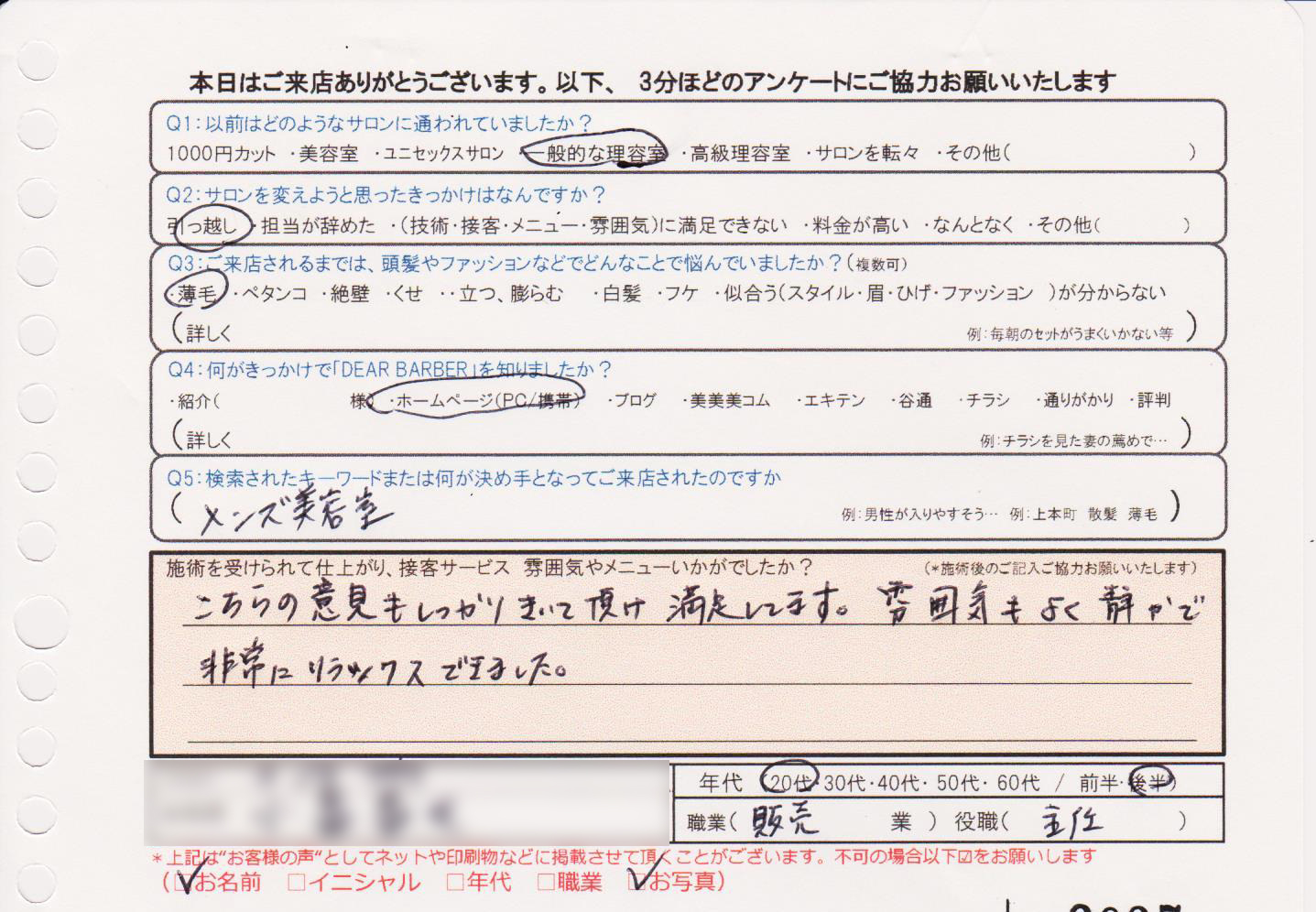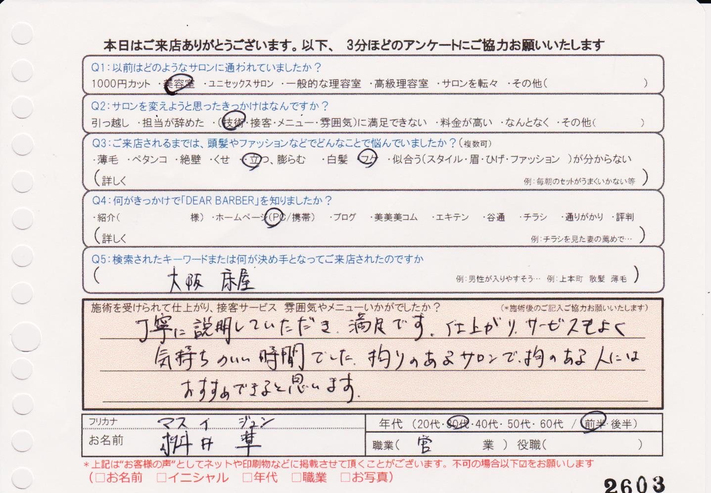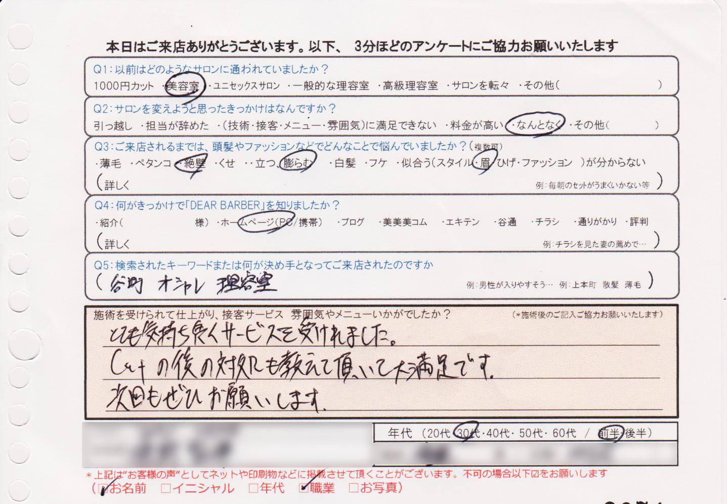 仕上がり、接客、すべて満足です。注文した通りのヘアスタイルになってありがとうございました。
